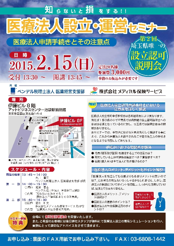 - 医療法人設立・運営セミナー(埼玉県)|詳細