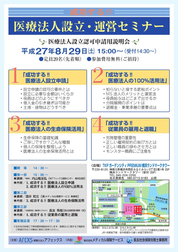 - 医療法人設立・運営セミナー(横浜)|詳細