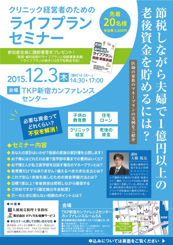 - クリニック経営者のためのライフプランセミナー (定員となりました)|詳細