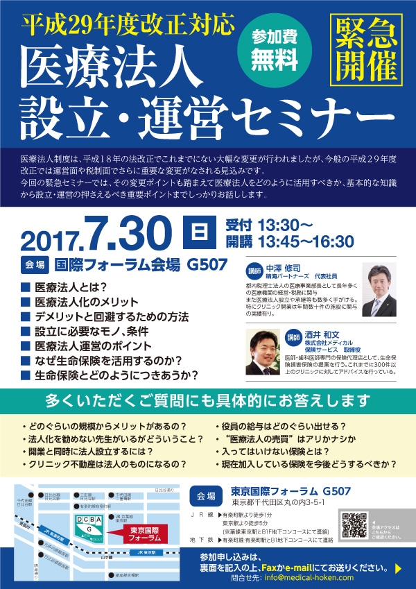 - 【平成29年度改正対応】医療法人設立・運営セミナー|詳細